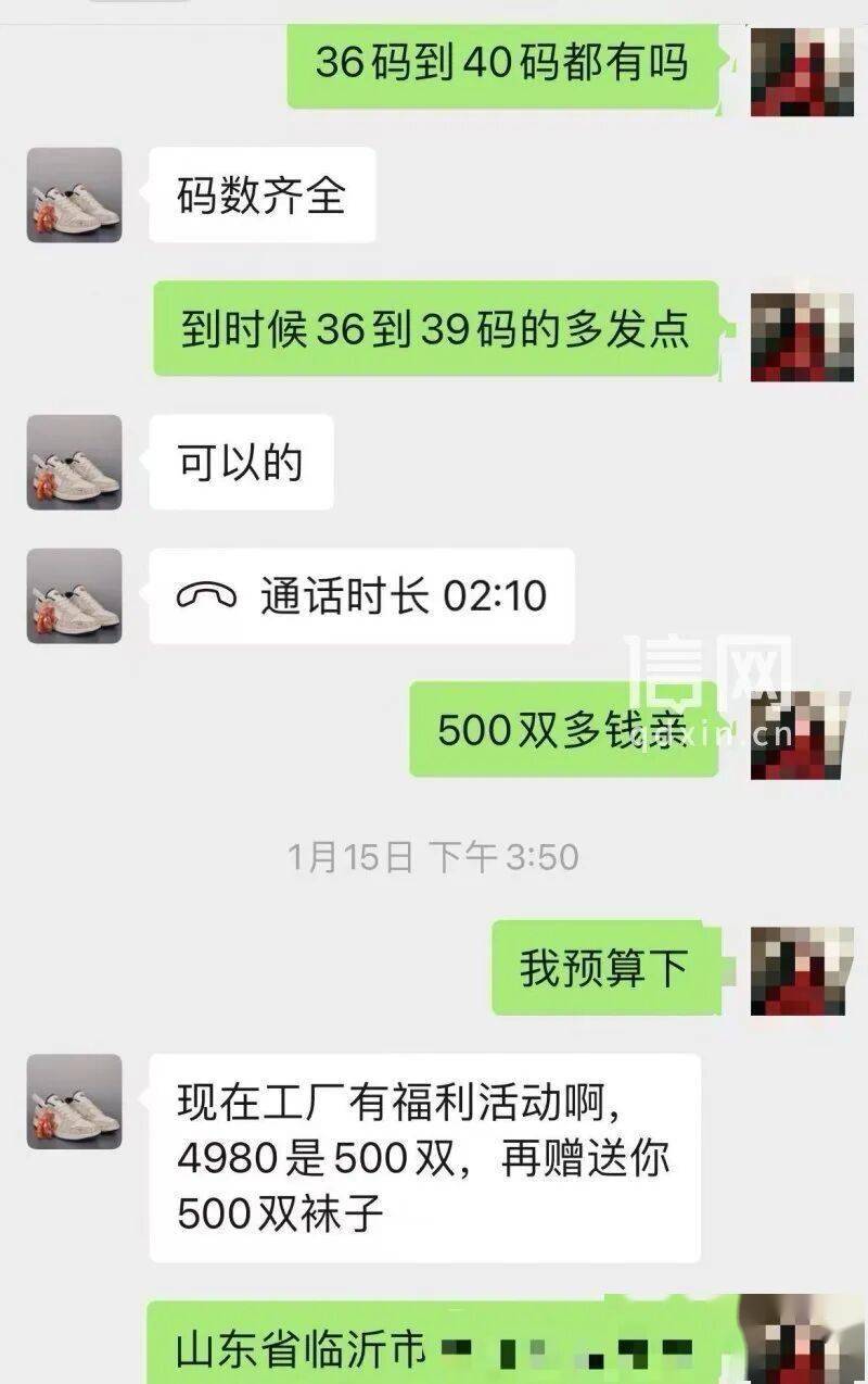 经过几轮沟通,双方约定以4980元的价格成交500双鞋,每双鞋价格不到10元,货品以36~40码的精品女鞋为主。况经理还表示,可以额外送500双袜子,相当于白赚。被“高利润”和“免费赠品”打动,刘女士在1月18日收到对方发来的物流单号后,便通过微信转账付清了4980元。