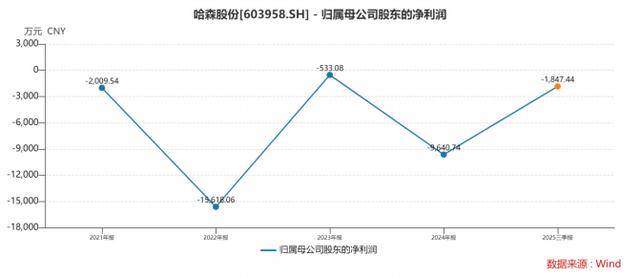 在启动跨界前,哈森股份核心业务为中高端皮鞋的品牌运营﹑产品设计和销售。尽管旗下拥有“哈森”、“卡迪娜”、“哈森男鞋”等多品牌矩阵,但由于皮鞋行业整体产销承压,加之自身在传统业务上遭遇消费习惯变迁、竞争加剧等多重挤压,原有增长路径已然收窄。2020年以来,公司归母净利润持续为负,至2024年已连续5年亏损,且预计2025年将继续亏损,累计亏损额约3.4亿元。