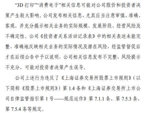 证券之星注意到,公司近期股价大幅上涨与在互动平台披露的“3D打印”“消费电子”等业务信息密切相关。不过由于公司的相关表述未能完整、准确地反映相关业务的实际情况及潜在风险,经监管督促后才在后续公告中予以说明,为此上交所亦在近期向公司及其董秘钱龙宝下发函件,对二者予以监管警示。另外在经营层面,近年来业绩持续亏损的哈森股份正尝试通过跨界转型提振经营表现,但新业务能否在短期内快速改善公司盈利能力,仍有待观察。
